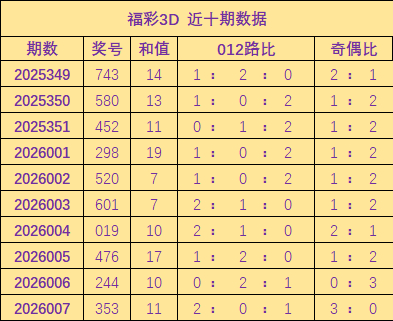 开奖回顾:福彩3D上期奖号为353,其中奖号012路比为2:0:1,和值为11,奇偶比3:0。