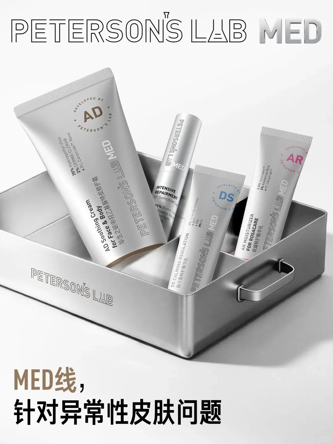 例如,毕生之研所推出的MED线,就是针对其未曾涉及细分领域,针对唇炎、玫瑰痤疮、特应性皮炎、脂溢性皮炎等异常皮肤问题打造的特殊产品线。同时,为保障产品的真实有效,MED线还会在三甲医院通过特定受众进行人体功效测试,甚至可以作为相关问题的补充与辅助。