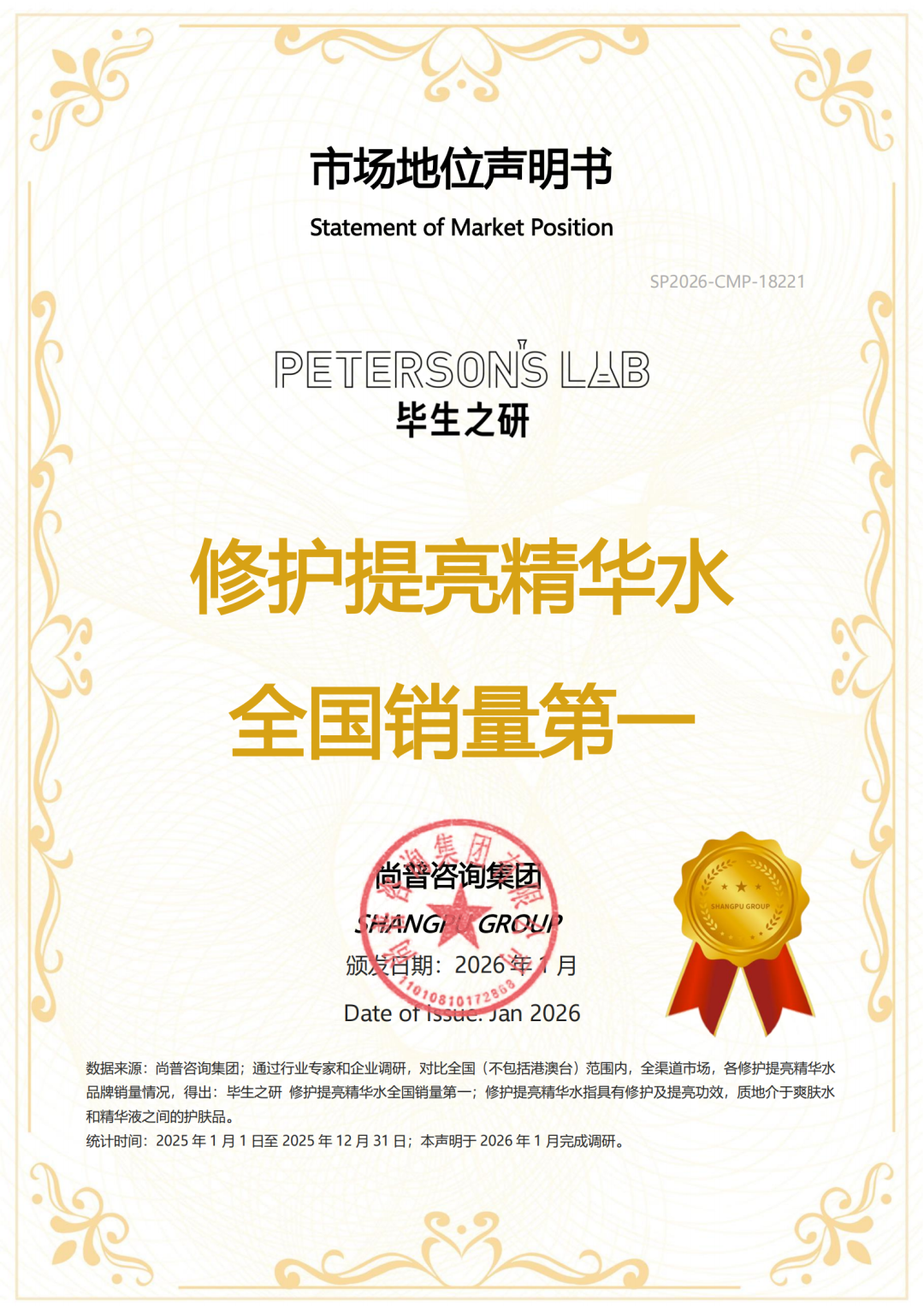 据尚普咨询集团认证,2025年,毕生之研修护提亮精华水实现全国销量第一。这一成绩,是对品牌十年埋头实验室的最好回馈,也是消费者用真金白银投下的信任票。